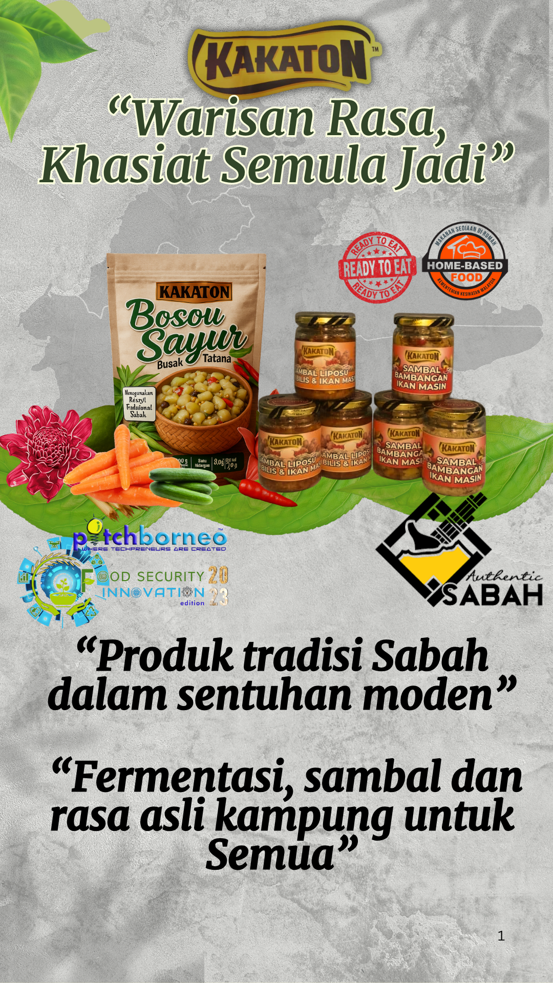 Rasai keaslian makanan tradisional Sabah yang diproses secara semula jadi. Setiap produk KAKATON kaya dengan rasa, khasiat probiotik, dan identiti Borneo yang sebenar.